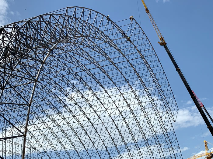 (2)网架加工前应对现场尺寸进行复测,确认无误后方可进行加工、安装;网架制作、运输、安装应遵守《空间网格结构技术规程》JGJ7-2010、《钢网架潞城螺栓球节点》JG/T 10-2009、《钢网架潞城螺栓球节点用高强度螺栓》 GB/T 16939-2016、《潞城钢结构潞城工程潞城施工规范》 GB50755-2012、《潞城钢结构潞城工程潞城施工质量验收标准》 GB50205-2020。
